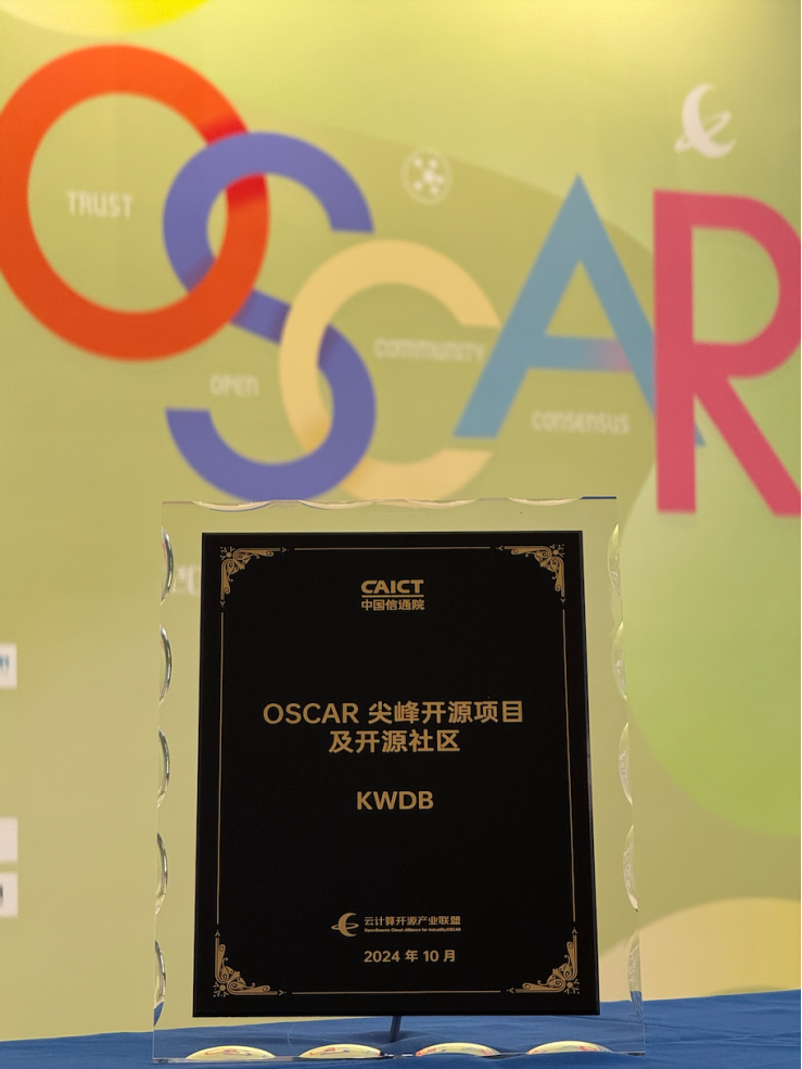 10月16日,由中国通信标准化协会、中国信息通信研究院联合举办的“2024 OSCAR 开源产业大会”在京举行。为进一步探索中国开源生态发展模式,加速开源技术在国内市场落地,大会特别设立「OSCAR开源尖峰案例」评选,以鼓励企业或个人进一步探索我国软件开源技术发展模式,通过立标杆、树典范,帮助更多企业提升开源治理能力。开源项目KWDB 斩获“2024 OSCAR尖峰开源项目及社区”奖。