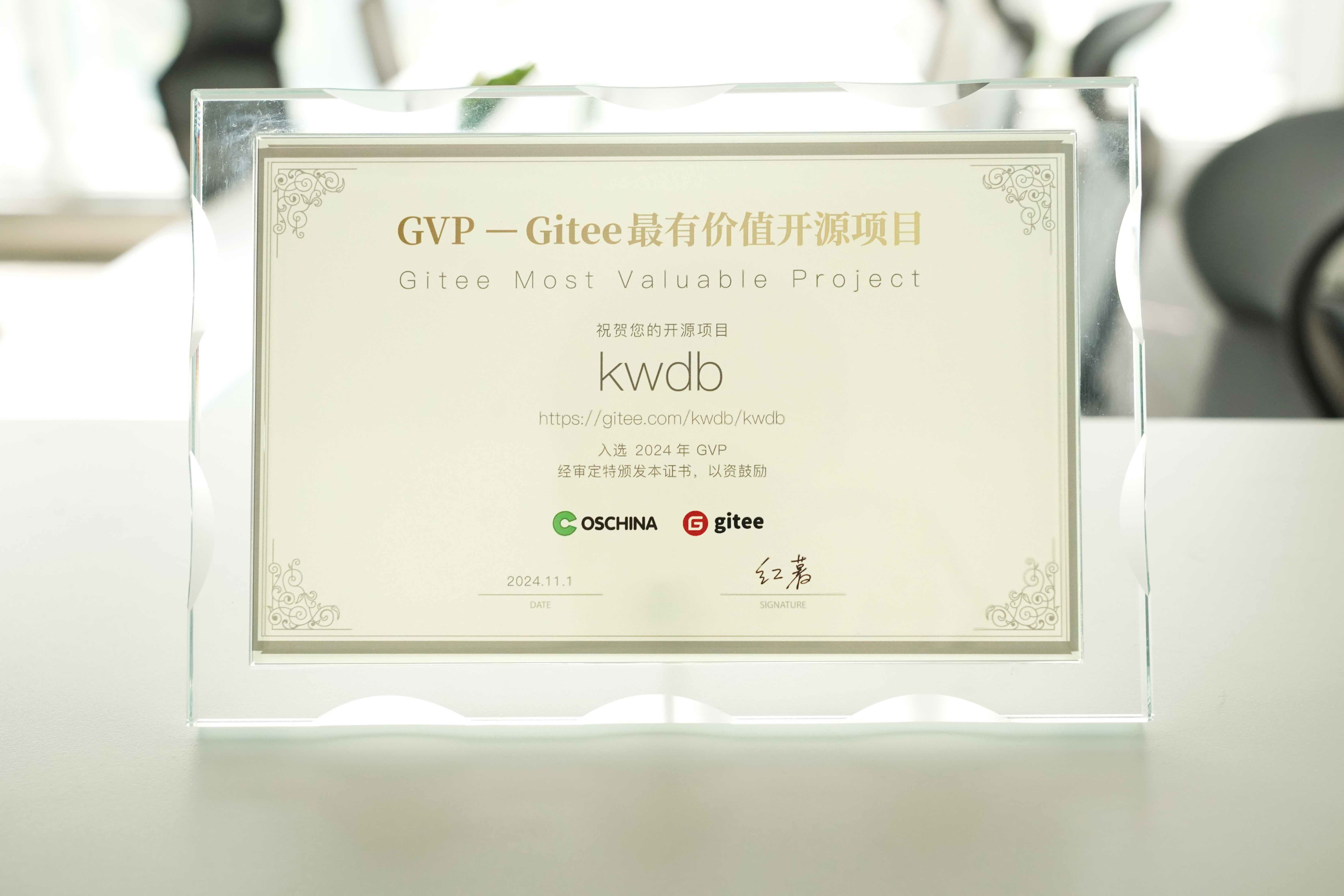 开源数据库 KWDB 获评 GVP-- Gitee 最有价值开源项目
