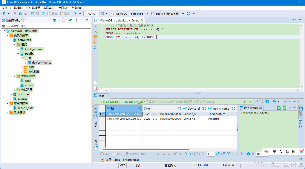 Ubuntu 22.04系统KWDB数据库安装部署使用教程_案例传感器