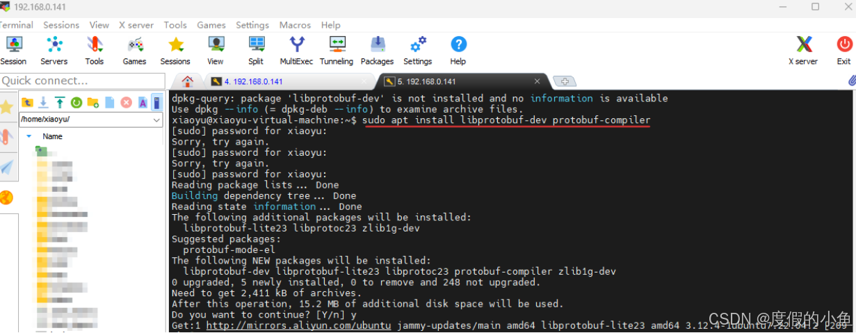 执行下面的命令来安装libprotobuf开发库和协议缓冲区编译器。