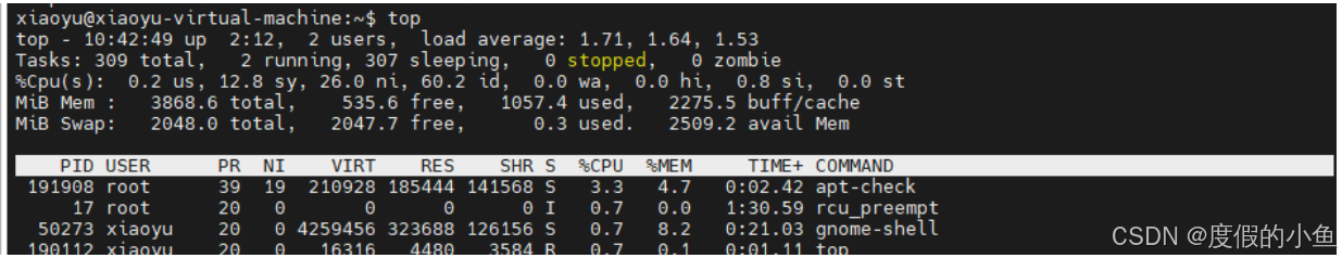 • top命令可以实时显示系统中各个进程的资源使用情况,包括 CPU、内存等的占用率。
