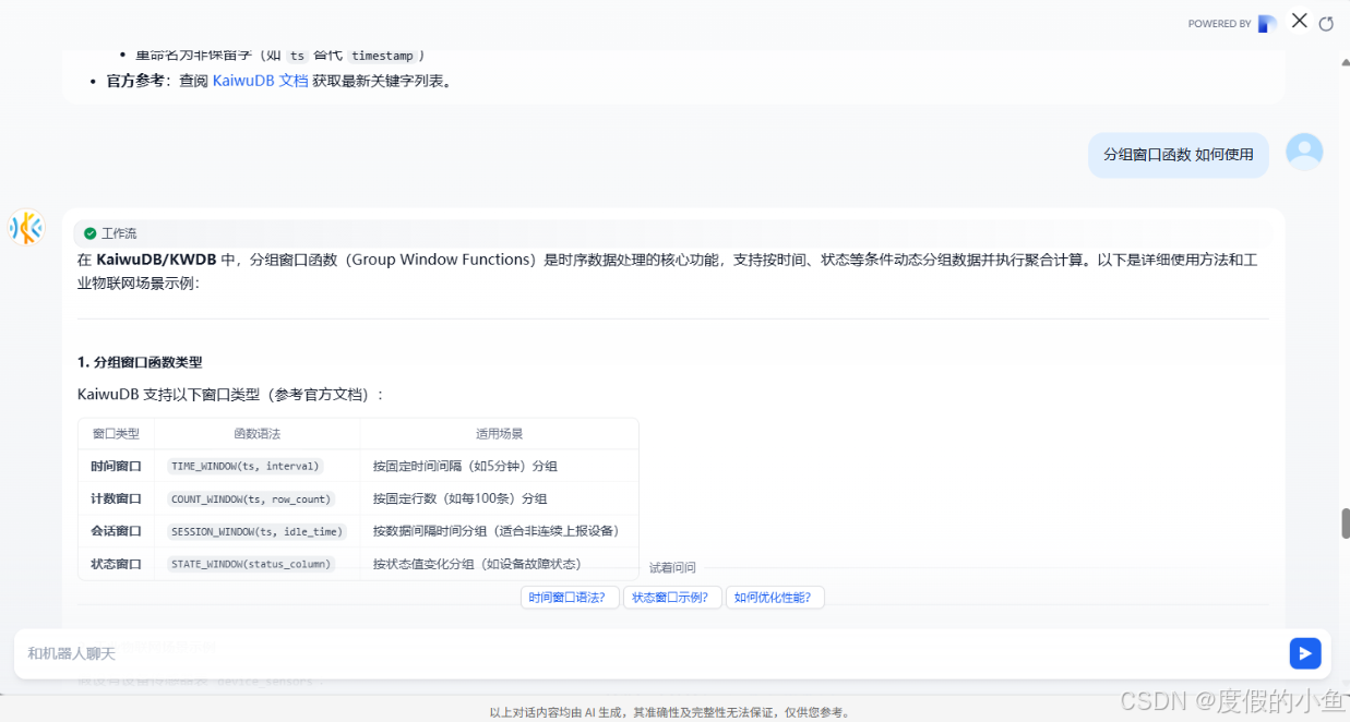 官网提供了 AI智能数据库交互问答 小助手,貌似不太理想,如果可以给出结果在链接到官方文档就更方便了.