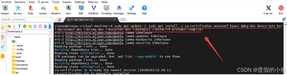 sudo apt update && sudo apt install -y ca-certificates autoconf byacc dpkg-dev devscripts build-essential checkinstall libssl-dev libprotobuf-dev liblzma-dev libncurses-dev libatomic1 libstdc++6 protobuf-compiler