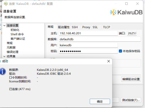 4.2、使用KaiwuDB开发者中心连接