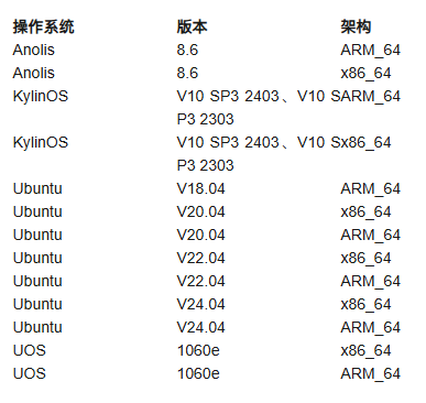KaiwuDB 支持在以下服务器操作系统进行安装部署。