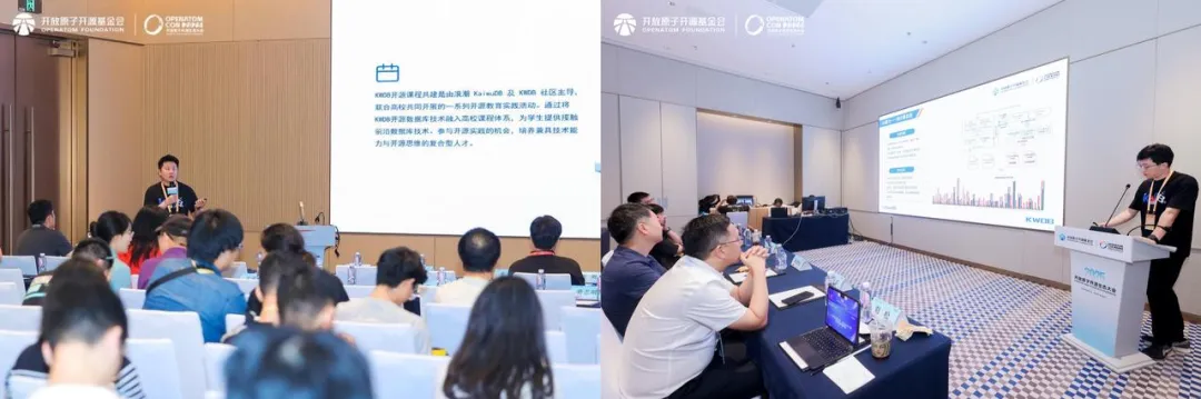 7 月 23 日至 24 日,由开放原子开源基金会主办的 2025 开放原子开源生态大会在北京国家会议中心盛大举行。 KaiwuDB 高级研发工程师孙路明在“构建适配 AI 应用的开源数据生态分论坛”就 KWDB 通过拥抱 AI 生态重塑数据库交互逻辑展开分享;KaiwuDB 开发者关系负责人郭旭东受邀参与“开源人才生态共建分论坛”,系统介绍 KWDB 社区开源人才培养体系建设,以及通过高校共建课程实现高质量开源人才培养的相关经验。