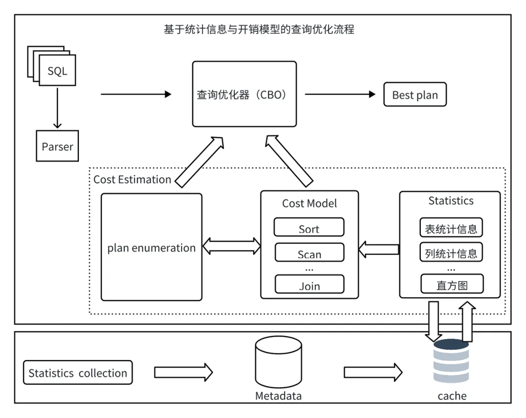 统计信息作为查询优化器的数据源,统计信息的收集过程如图所示: