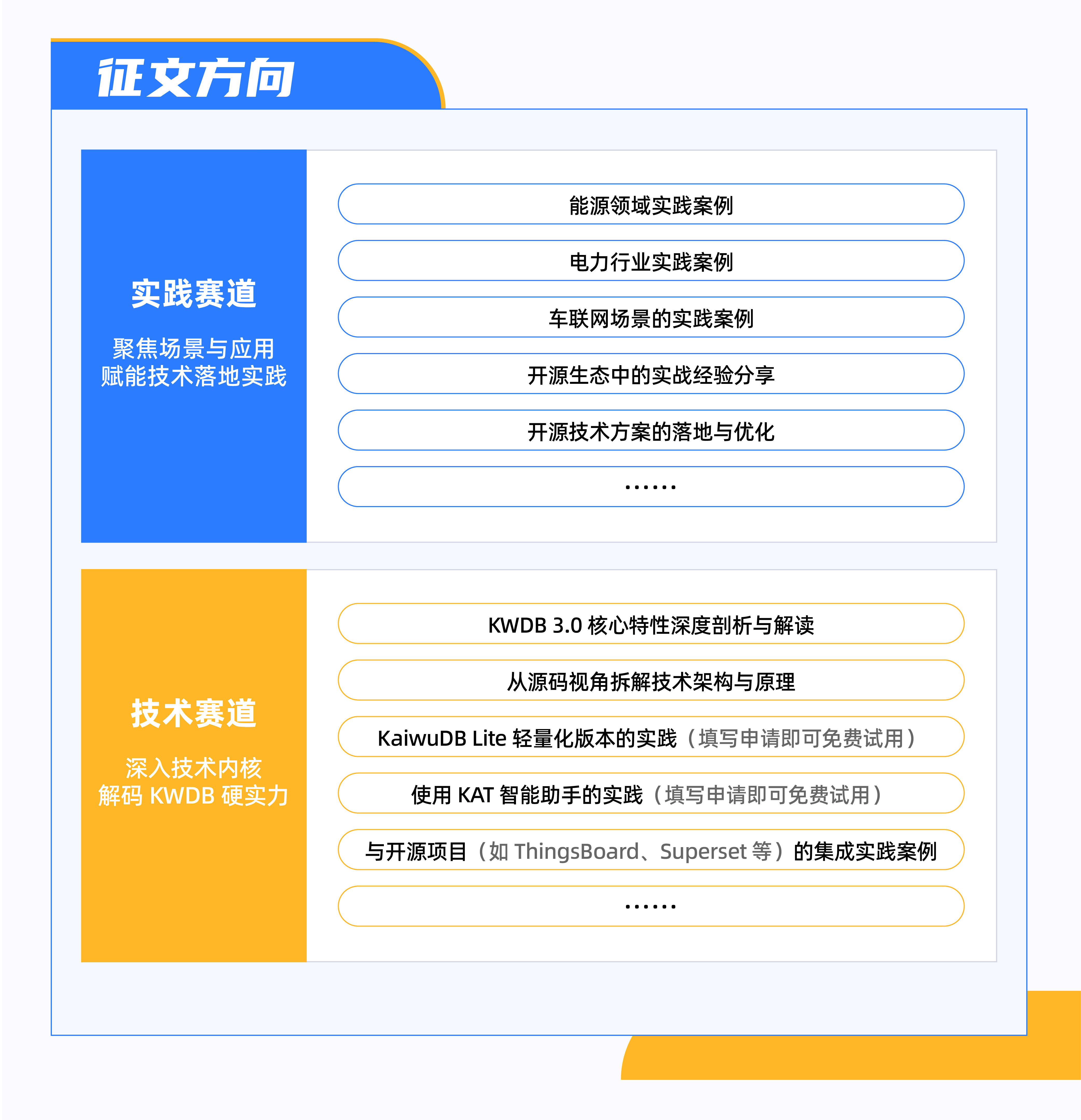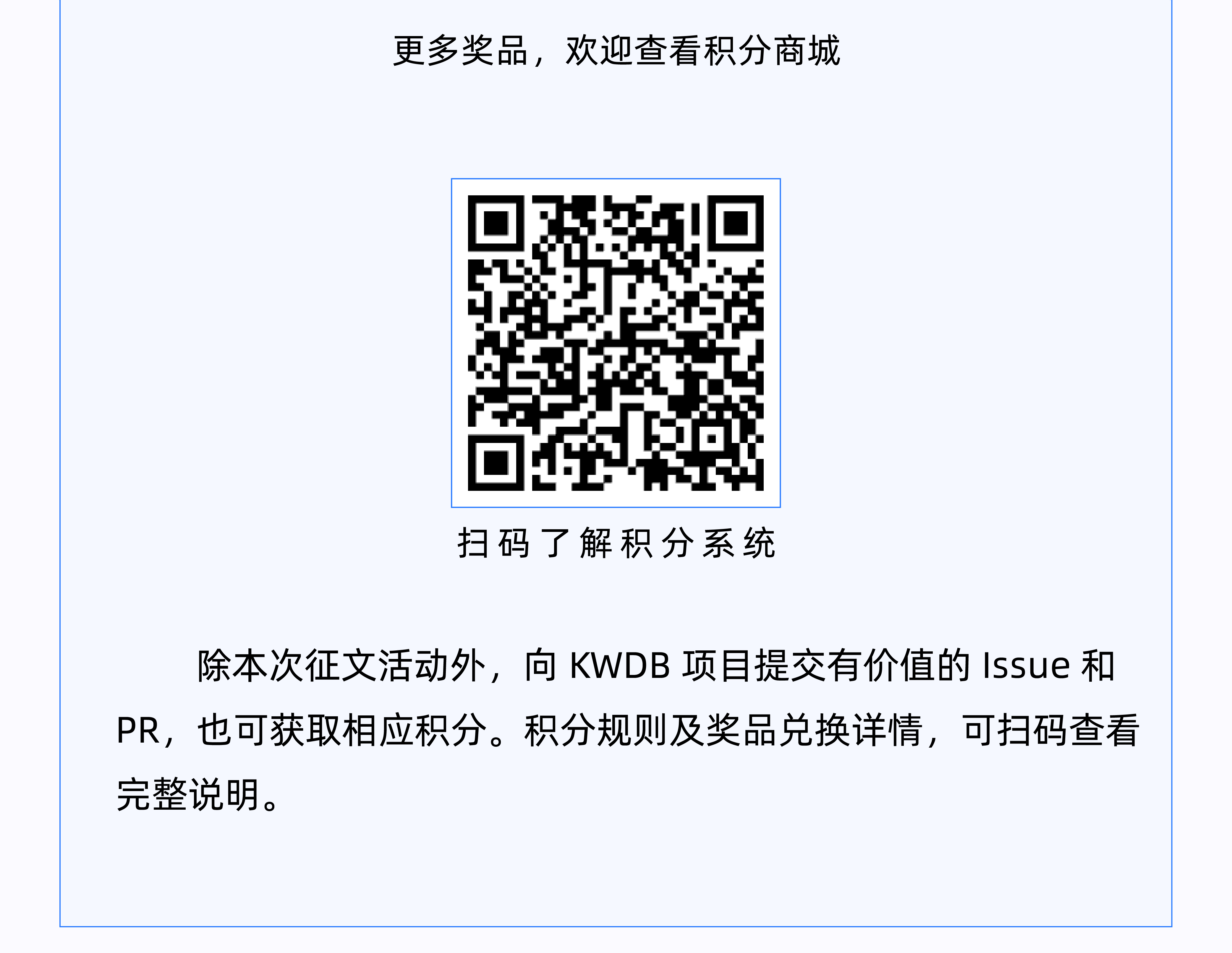 想了解往届开发者的精彩分享?点击查看👉 https://www.kaiwudb.com/chuangzuozhejihua/ 此刻,代码的火种已点燃,创新的征途正开启。无论是深耕场景的实践派,还是钻研内核的技术控,KWDB 的舞台都等你来!用文字记录技术思考,用代码传递开源力量 —— 这个冬天,让我们以技术为名,共赴 KWDB 的巅峰之约🔥!