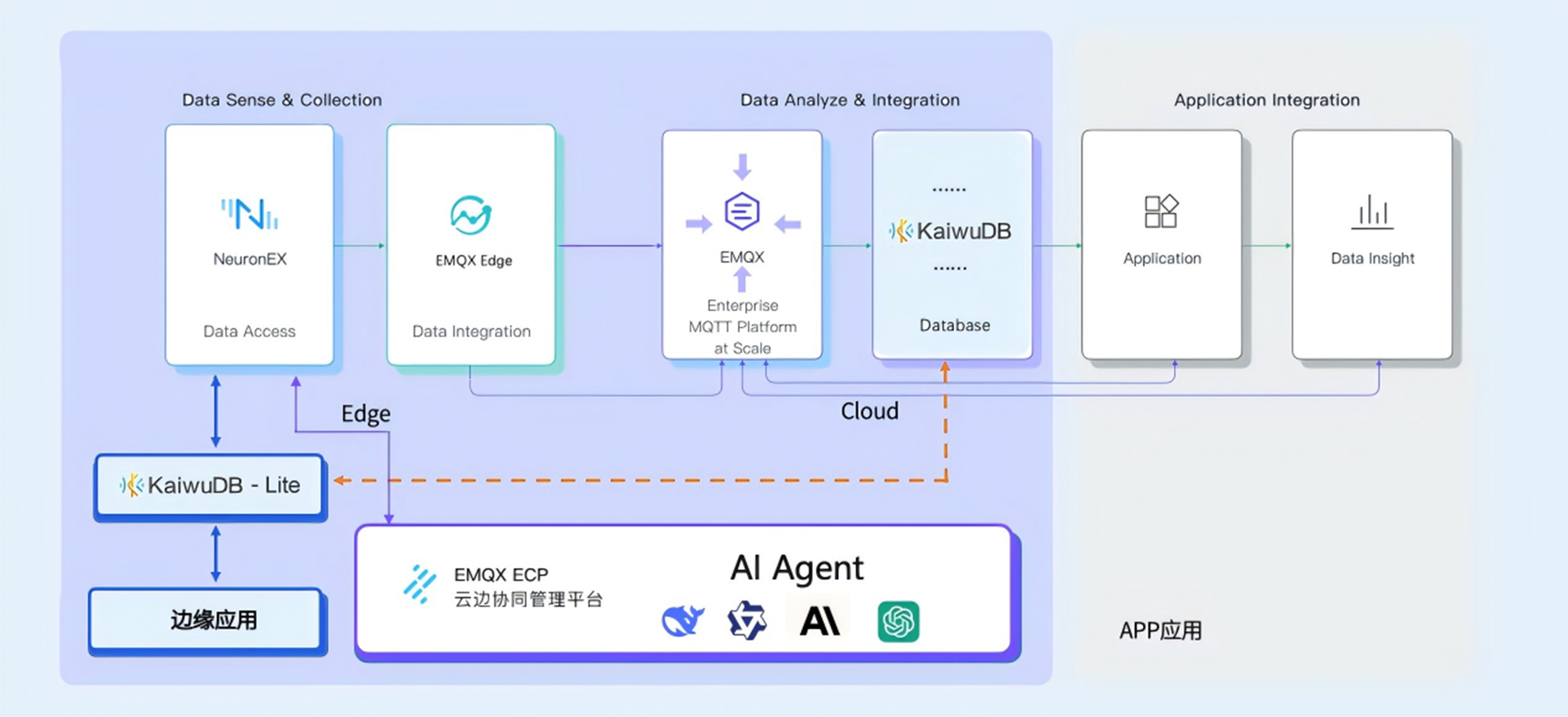 图:KaiwuDB & EMQ 云边端一体化数据底座联合解决方案