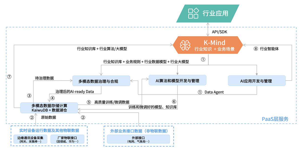 • 底层依托 KaiwuDB 分布式多模数据库与数据湖仓,为多模态数据提供高效、可靠的存储与计算支持;