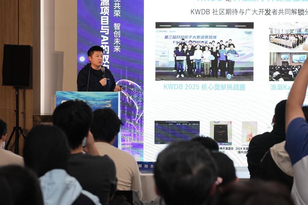 在该分论坛上,KaiwuDB 开源专家、KWDB 开源运营负责人郭旭东在演讲中也提出了一个新的趋势:开源已成为数据库与 AI(尤其大模型)深度融合的最佳协作平台。