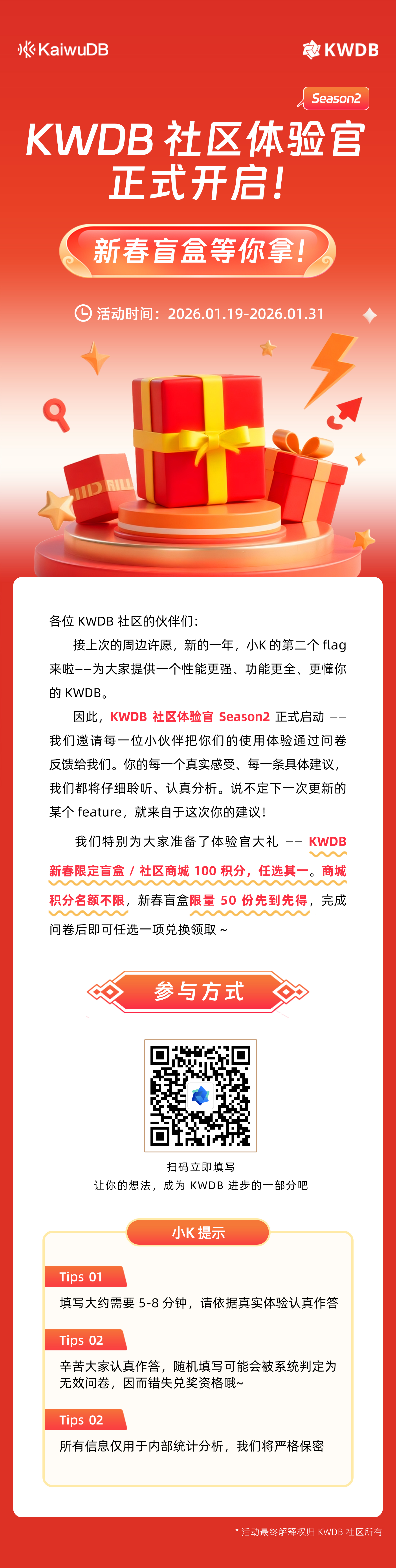 盲盒有礼!快来领取 KaiwuDB 社区体验官专属福利!
