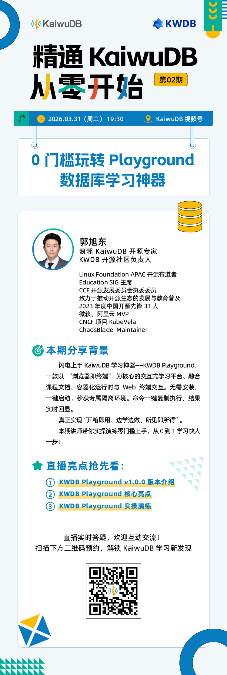 KaiwuDB 资深专家将带你全面解锁这款"开箱即用、边学边练"的KaiwuDB 数据库学习神器!