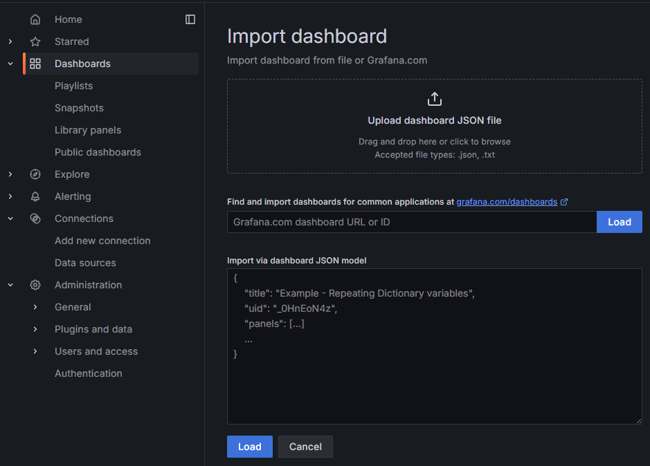 • 在 Grafana 左侧边栏,单击 Dashboards。