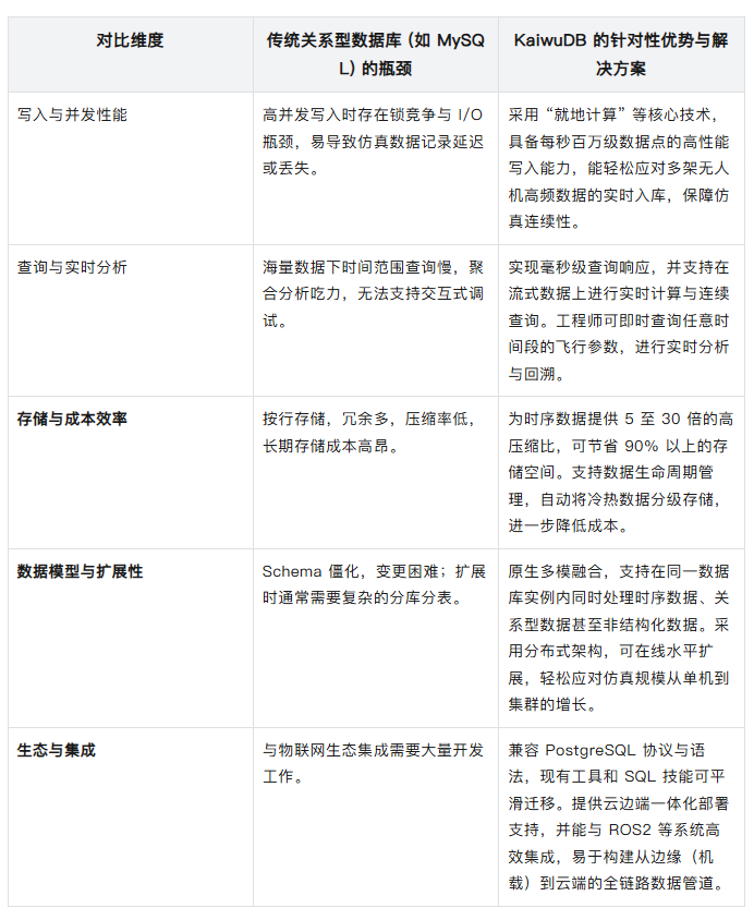 在 PX4-ROS2 无人机仿真这一追求高效率、高保真、高迭代速度的业务场景下,MySQL 的上述痛点已从技术问题上升为业务发展的制约: