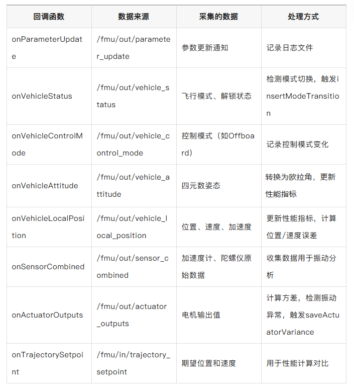 • 状态估计数据:EKF 滤波后的姿态、位置、速度等状态量。